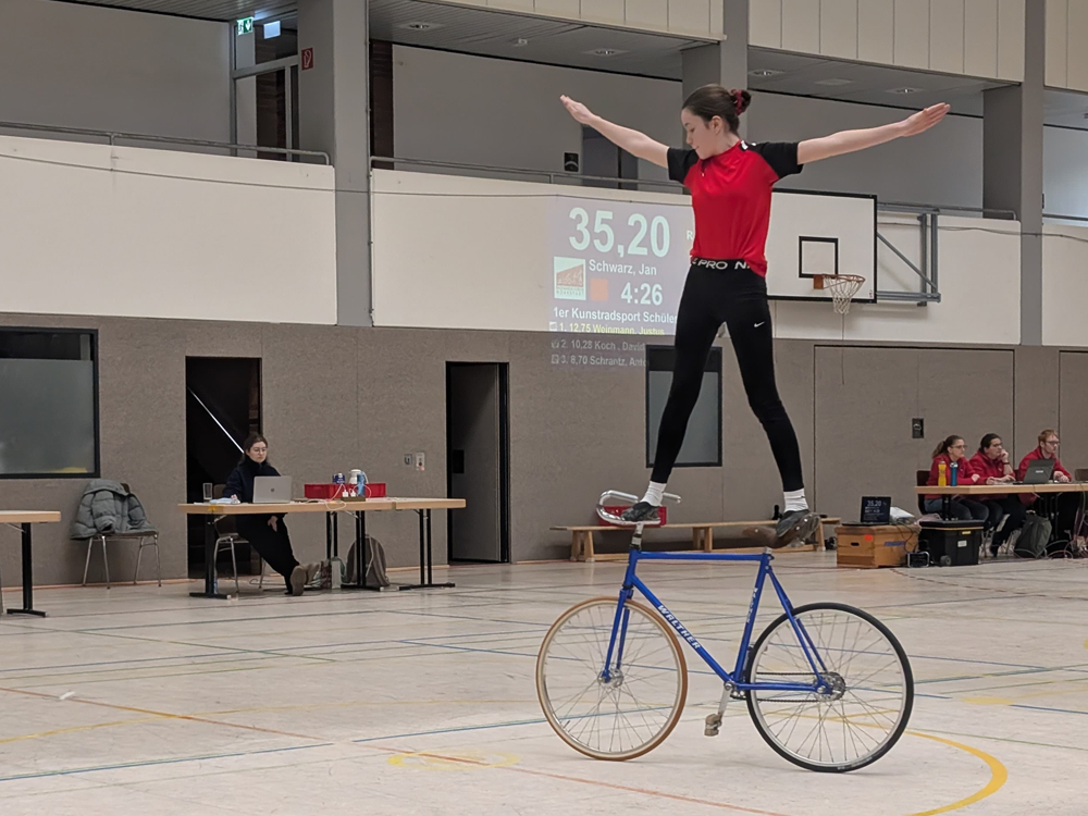 Nach zweijähriger Corona-Zwangspause begann am 12. Februar 2022 mit dem Halbfinale zur Rheinhessenmeisterschaft in Mainz-Hechtsheim endlich wieder eine Wettkampfsaison für die Kunstradfahrinnen und Kunstradfahrer in der Region. Für den RV Finthen gingen drei Nachwuchs-Sportlerinnen und -Sportler an den Start.